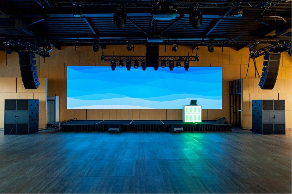 ในส่วนของระบบเสียงเอง ไม่ได้มีแค่ลำโพงหน้าเวที แต่ต้องมีการกระจายเสียงไปยังด้านหลังของห้องด้วย เพื่อให้ทุกคนได้ยินชัดเจนในระดับที่ใกล้เคียงกัน หากออกแบบดี ผู้พูดไม่จำเป็นต้องใช้เสียงดังมาก แต่ผู้ฟังก็ยังได้ยินชัดทุกที่นั่ง